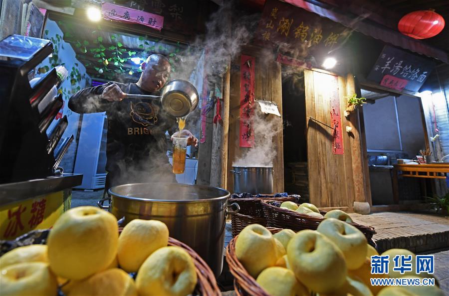 10月20日,游客在岚山根景区内体验吹糖人。 新华社记者 杨晨光 摄