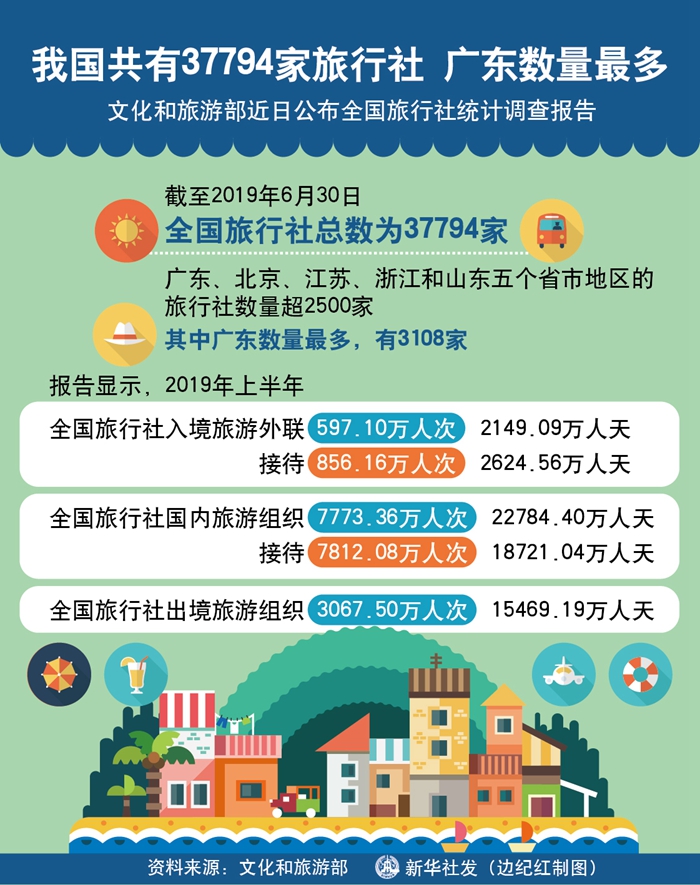 我国共有37794家旅行社 广东数量最多