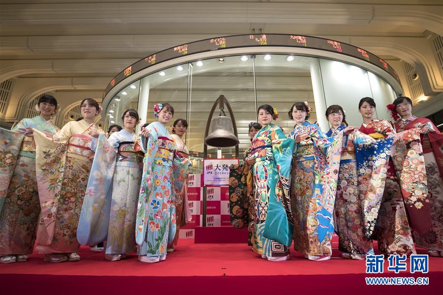 这是2019年1月4日,在日本东京,身着和服的女子在股市开市仪式上合影。当日,日本东京股市迎来新年第一个交易日。 新华社记者 杜潇逸 摄 |