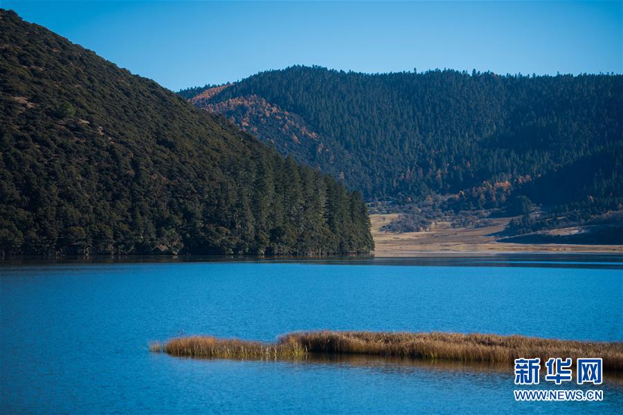 这是普达措国家公园属都湖一景(11月6日摄)。 初冬时节,位于云南省西北部的迪庆藏族自治州境内的梅里雪山、普达措、纳帕海、白水台等景色迷人。 新华社记者 胡超 摄