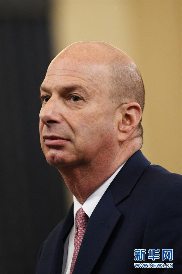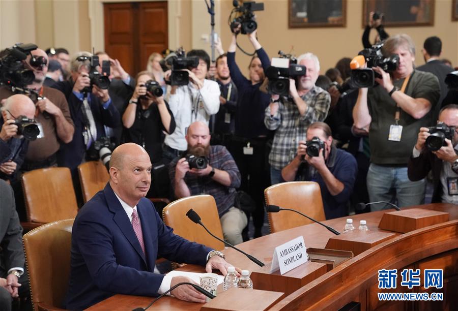 11月20日,在美国华盛顿,美国驻欧盟大使戈登·桑德兰就针对总统特朗普的弹劾调查公开提供证词。新华社记者 刘杰 摄