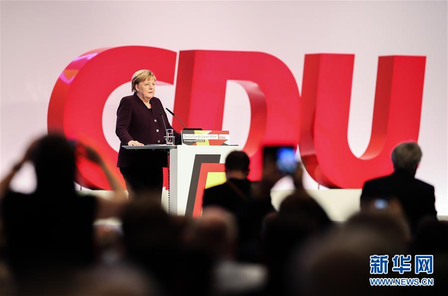 11月22日,在德国莱比锡,德国总理默克尔(右)出席德国基督教民主联盟(基民盟)全国党代会。 德国基民盟22日至23日在莱比锡举行全国党代会。 新华社记者 单宇琦 摄