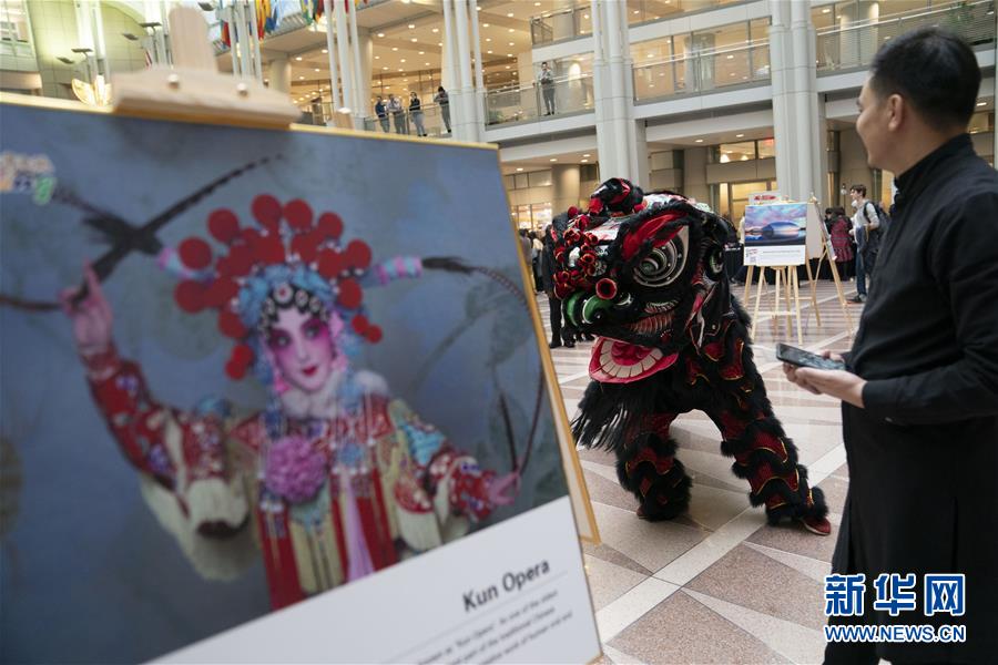 11月22日,在美国华盛顿,演员在“北京日”文化庙会活动上表演舞狮。 作为中国北京和美国首都华盛顿缔结友好城市35周年庆祝活动的一部分,“北京日”文化庙会22日在华盛顿罗纳德·里根大厦和国际贸易中心举行。 新华社记者 刘杰 摄