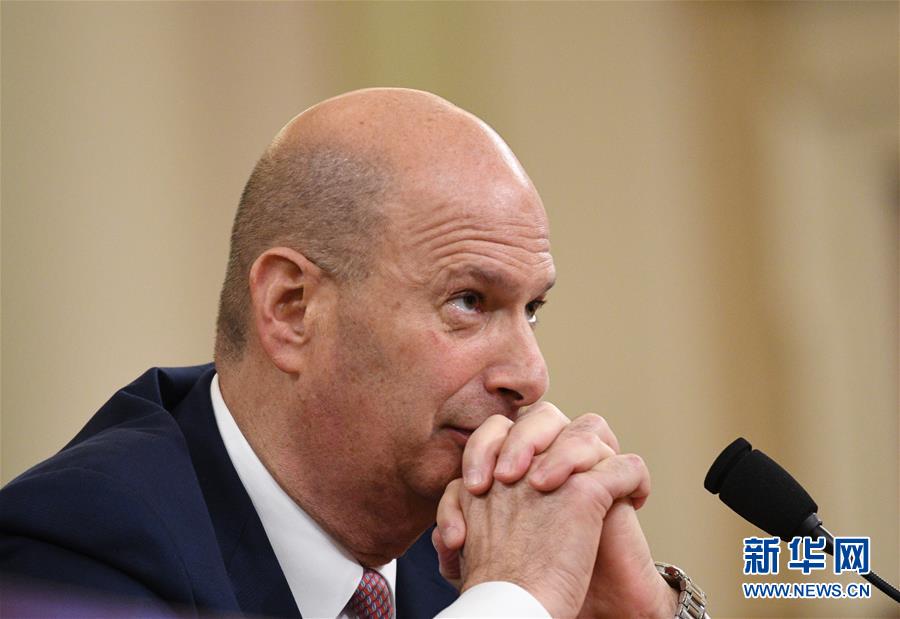 11月20日,在美国华盛顿,美国驻欧盟大使戈登·桑德兰就针对总统特朗普的弹劾调查公开提供证词。 美国驻欧盟大使戈登·桑德兰20日到美国国会众议院情报委员会,就针对总统特朗普的弹劾调查公开提供证词。桑德兰是特朗普政府乌克兰事务的主要参与者,美国舆论普遍视他为当前弹劾调查重要证人之一,他的作证因此备受关注。