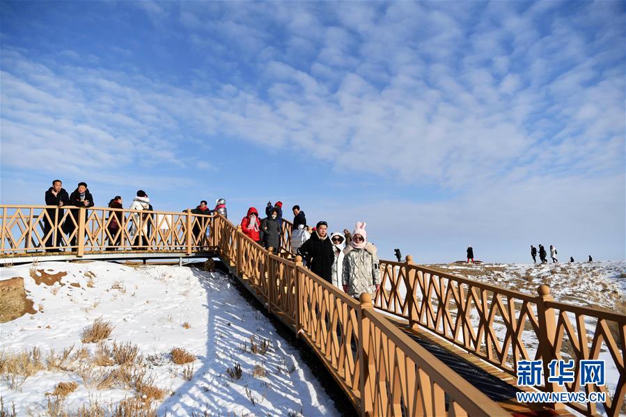 11月26日,来自全国百家旅行社的旅游业界人士在新疆福海县乌伦古湖海上魔鬼城景区参观。 福海县乌伦古湖海上魔鬼城景区位于新疆阿勒泰地区福海县吉力湖东岸,有着独特的雅丹地貌和水域景观,是当地著名的旅游胜地。 新华社记者 沙达提 摄