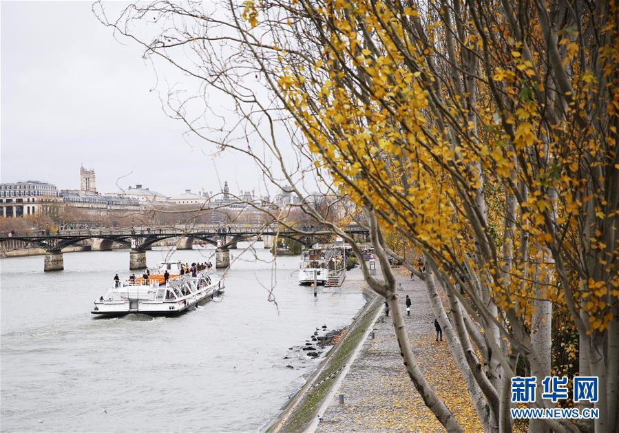 11月27日,在法国巴黎,游船在塞纳河上行驶。 新华社记者 高静 摄