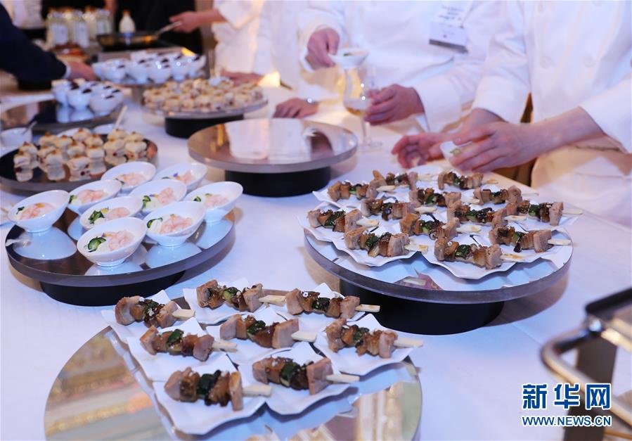 12月2日,在位于巴黎的法国外交部,来宾品尝来自中国的“白家大院”餐厅准备的宫廷菜。 新华社记者 高静 摄