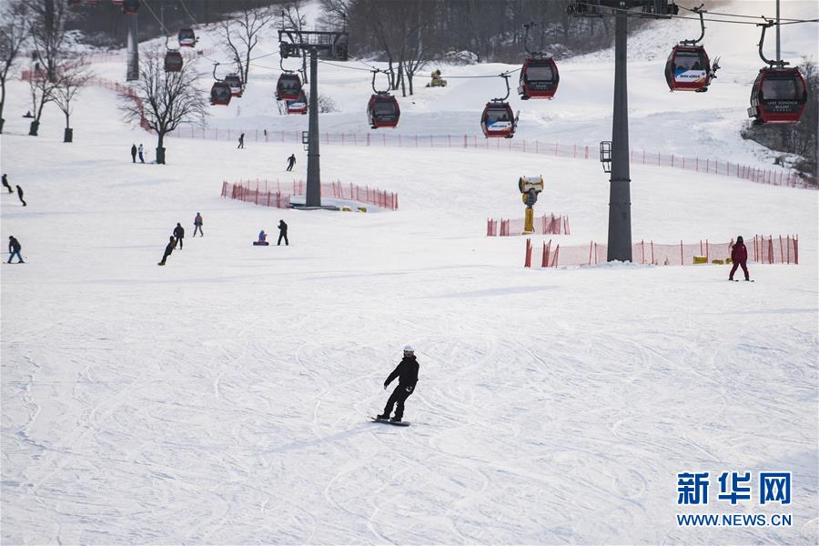 12月13日,滑雪爱好者在吉林市万科松花湖度假区滑雪。新华社记者 张豪夫 摄