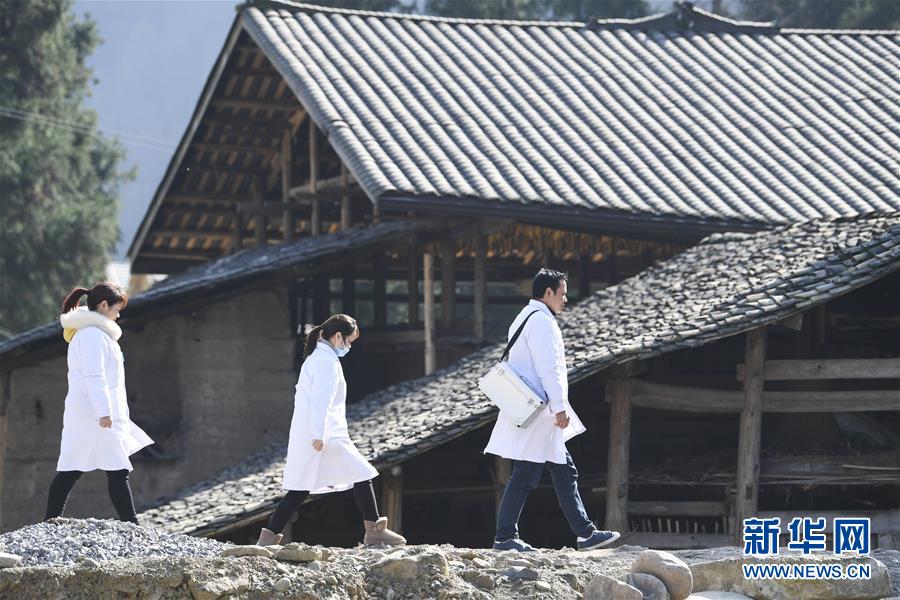 重庆市石柱土家族自治县中益乡卫生院的医护人员来到盐井村,对贫困户进行病情随访(12月10日摄)。新华社记者 王全超 摄
