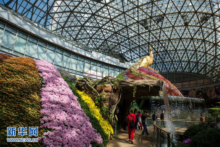 这是昆明“花之城”中高16米、长58米的“孔雀山”(12月22日摄)。 12月22日,位于云南省昆明市的大型花卉主题旅游综合体“花之城”吸引了许多游客与市民前来观光。据了解,花之城项目包含花卉主题温室、中法300年香料贸易文化体验式博物馆、4D弧形穹幕影厅等内容,总占地面积达6万多平方米。 新华社记者胡超 摄