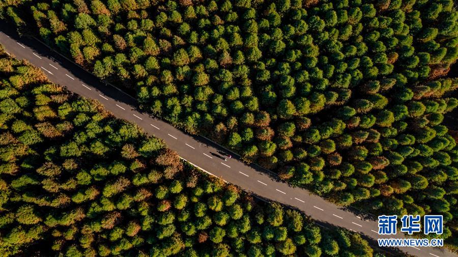 昆明捞鱼河湿地公园一景(12月23日无人机拍摄)。 连日来,春城昆明阳光明媚,风景秀丽。 新华社记者 胡超 摄