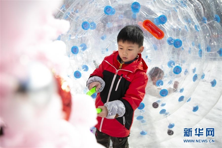 12月28日,小朋友在峨眉山风景名胜区玩耍。 当日,第21届峨眉山冰雪温泉节在四川峨眉山风景名胜区开幕。在景区的“童萌世界”,雪地悠波球、儿童雪地滑步车等亲子冰雪体验项目吸引了众多小朋友,他们在家长的陪伴下游玩嬉戏,尽享欢乐时光。 新华社记者 李梦馨 摄