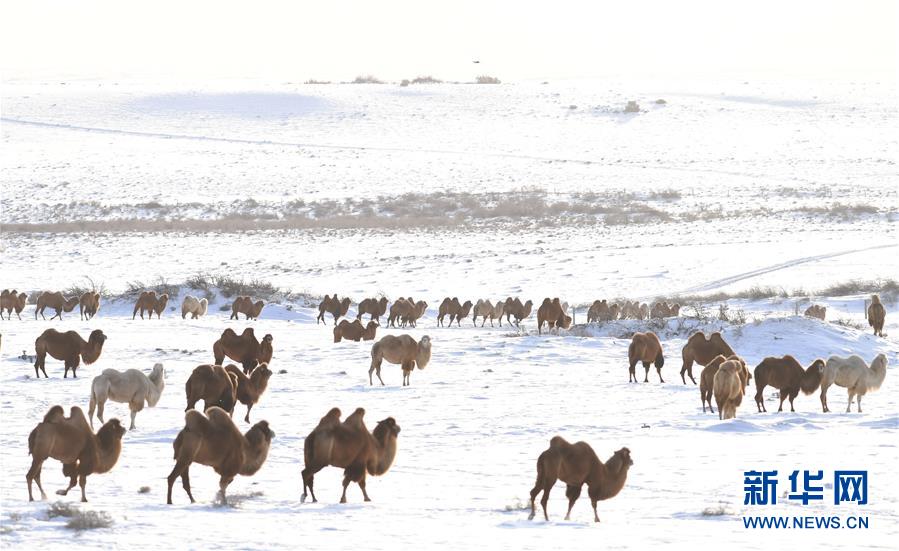 12月30日,一群骆驼在新疆吉木乃县“万驼园”觅食。新华社记者 沙达提 摄