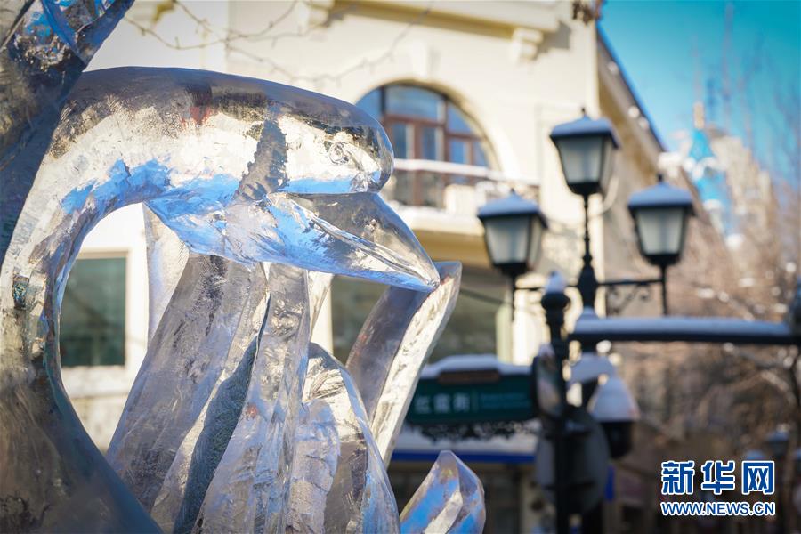 这是哈尔滨中央大街上的冰雕作品(1月1日摄)。 每到冬季,天气寒冷的冰城哈尔滨陆续迎来各类冰雕雪雕赛事。从2019年12月7日起,采冰工人们日夜采冰运冰、冰景雪雕艺术家精心雕琢,这些“冰雪造梦者”们在严寒天气中辛苦付出,让一座“冰雪之城”在松花江畔拔地而起,向来自世界各地的游客展现浪漫绚丽的冰雪奇观。 新华社记者 王松 摄 |