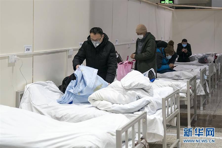 2月5日,患者在江汉方舱医院内。 当日22时,位于武汉市江汉区武汉国际会展中心的“方舱医院”正式启用,开始接收新型冠状病毒感染的肺炎轻症患者。这座“方舱医院”名为江汉方舱医院,床位数1600张。 新华社记者 熊琦 摄