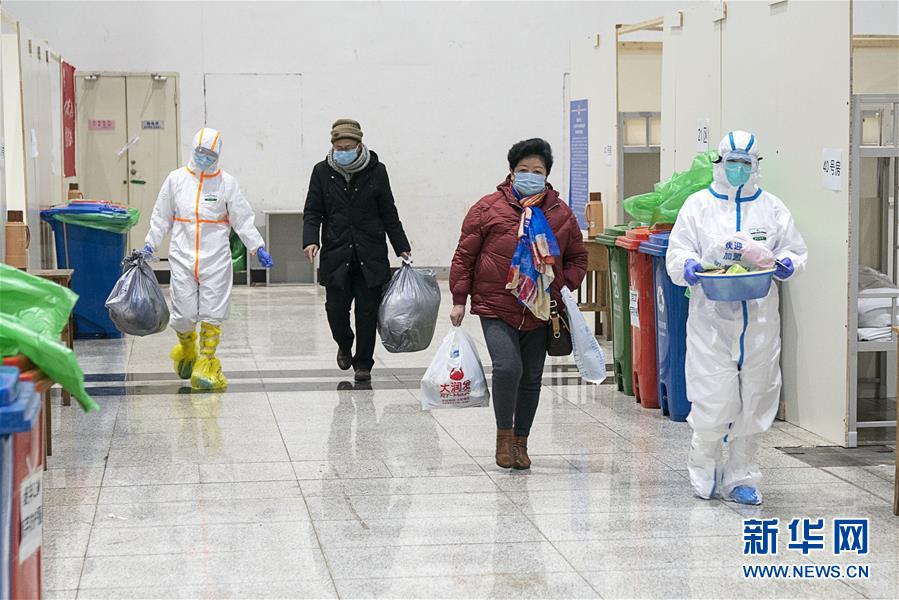 2月5日,一名患者在江汉方舱医院对医护人员表示感谢。 当日22时,位于武汉市江汉区武汉国际会展中心的“方舱医院”正式启用,开始接收新型冠状病毒感染的肺炎轻症患者。这座“方舱医院”名为江汉方舱医院,床位数1600张。 新华社记者 熊琦 摄