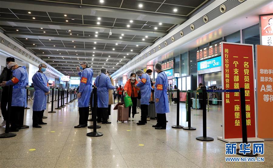 2月9日,工作人员在上海虹桥火车站到达层检查旅客手机上的“健康云”信息。 日前,为全力做好新冠肺炎疫情防控工作,上海虹桥火车站对出发和到达的旅客进行测温,其中到达的旅客还需提前通过下载上海“健康云APP”、扫描列车座位上的二维码或关注“上海铁路局微信公众号”等方式,完成“来沪人员健康登记”中个人信息填报。 新华社记者 方喆 摄