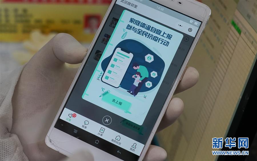 居民可以通过手机应用主动上报自查和求助信息(2月10日摄)。 新华社记者程敏摄