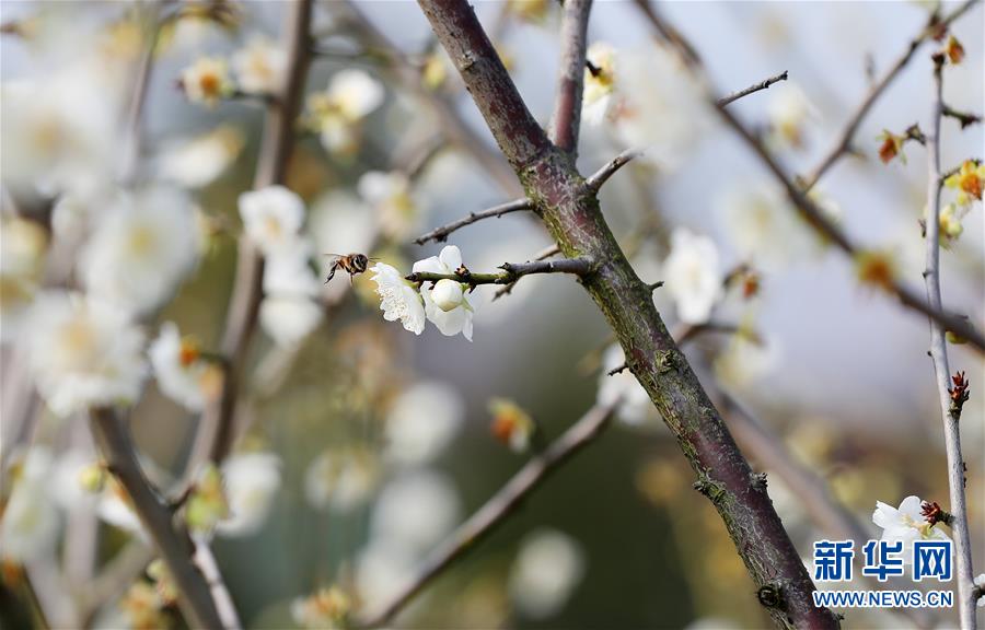 这是2月19日在上海金山区花开海上生态园拍摄的景色。 当日是“雨水”节气,位于上海金山区的花开海上生态园内梅花绽放,春意盎然。 新华社记者 方喆 摄