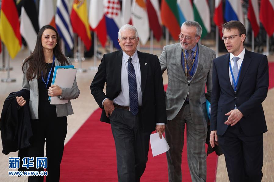 2月20日,欧盟外交与安全政策高级代表博雷利(左二)抵达比利时布鲁塞尔的欧盟总部准备出席特别峰会。 当日,欧盟在比利时布鲁塞尔的欧盟总部举行特别峰会,就欧洲联盟2021年至2027年财政预算寻求共识。欧盟需要在今年年底以前制定覆盖后续7年的“多年度财政框架”方案。 新华社记者 郑焕松 摄