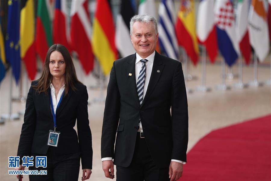 2月20日,立陶宛总统吉塔纳斯·瑙塞达(右)抵达比利时布鲁塞尔的欧盟总部准备出席特别峰会。 当日,欧盟在比利时布鲁塞尔的欧盟总部举行特别峰会,就欧洲联盟2021年至2027年财政预算寻求共识。欧盟需要在今年年底以前制定覆盖后续7年的“多年度财政框架”方案。 新华社记者 郑焕松 摄