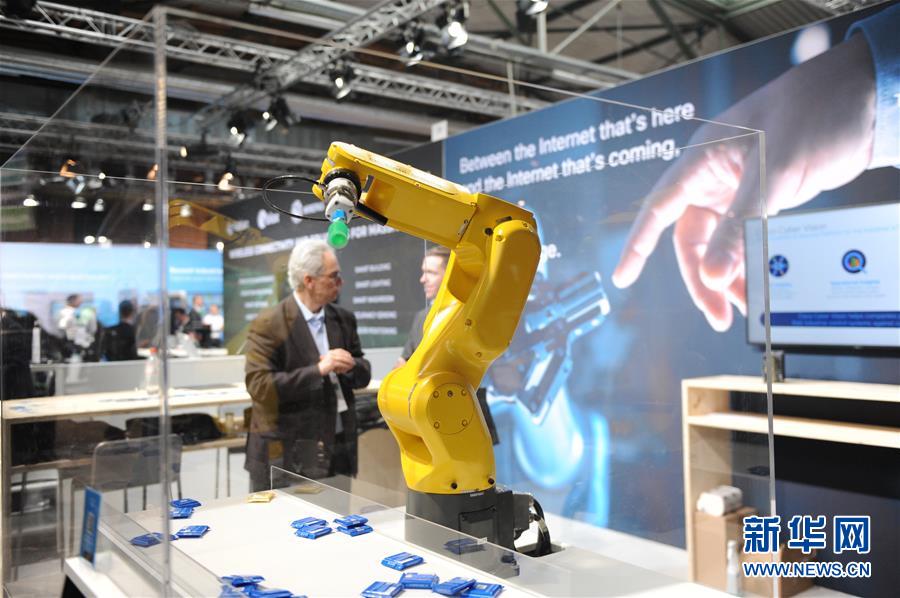 2月19日,在德国柏林,与会嘉宾在“互联世界”物联网大会开幕式上就数字转型进行研讨。