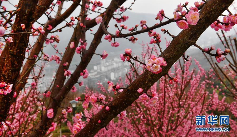 3月2日拍摄的平利县长安镇洪福茶山盛开的春梅。 当日,秦巴山区的陕西省安康市平利县迎来一场春雨,山野间绽放的春梅、杏花、樱桃花在春雨的滋润下,美不胜收。 新华社记者 陶明 摄