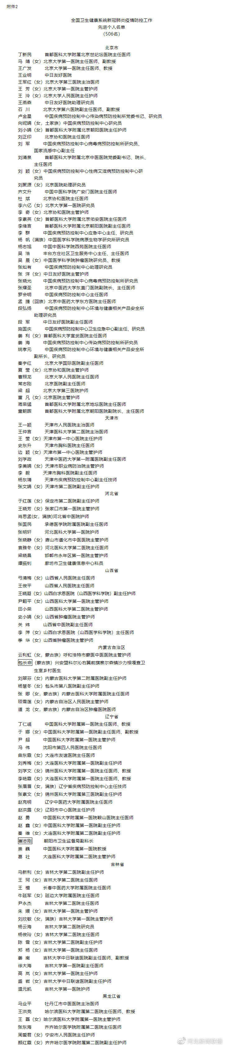 国家卫健委等三部门表彰新冠肺炎疫情防控工作先进集体和个人