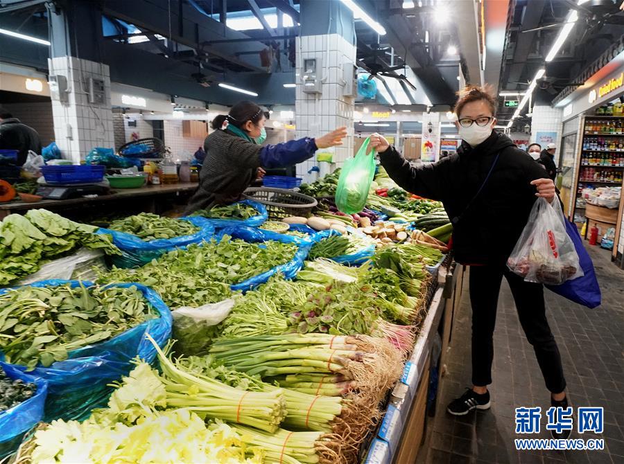 居民在上海市泰康路上的一家菜场购买蔬菜(2月23日摄)。新华社记者 陈飞 摄