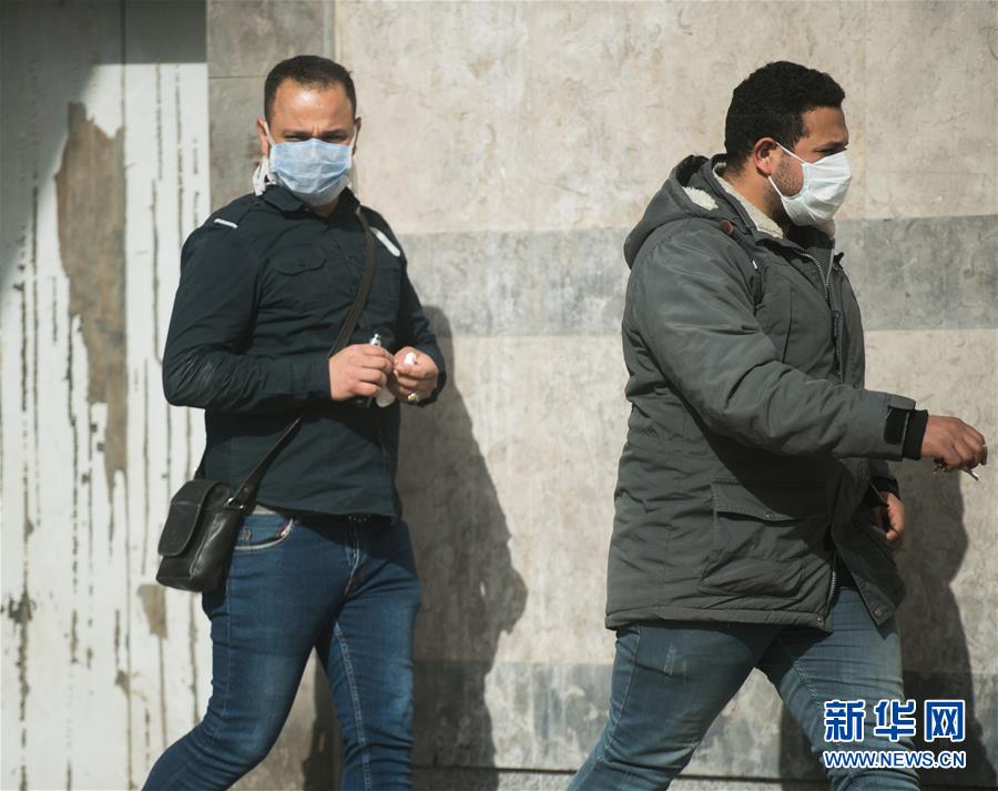 3月22日,在埃及首都开罗,两名男子戴口罩出行。新华社记者 邬惠我 摄