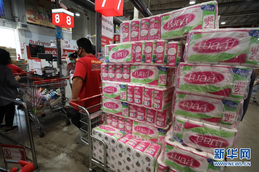 3月25日,在泰国曼谷,居民在一家超市内选购食品。 泰国总理巴育24日宣布自26日起在全国范围内实施约一个月的紧急状态法,以应对新冠肺炎疫情。 新华社记者 张可任 摄