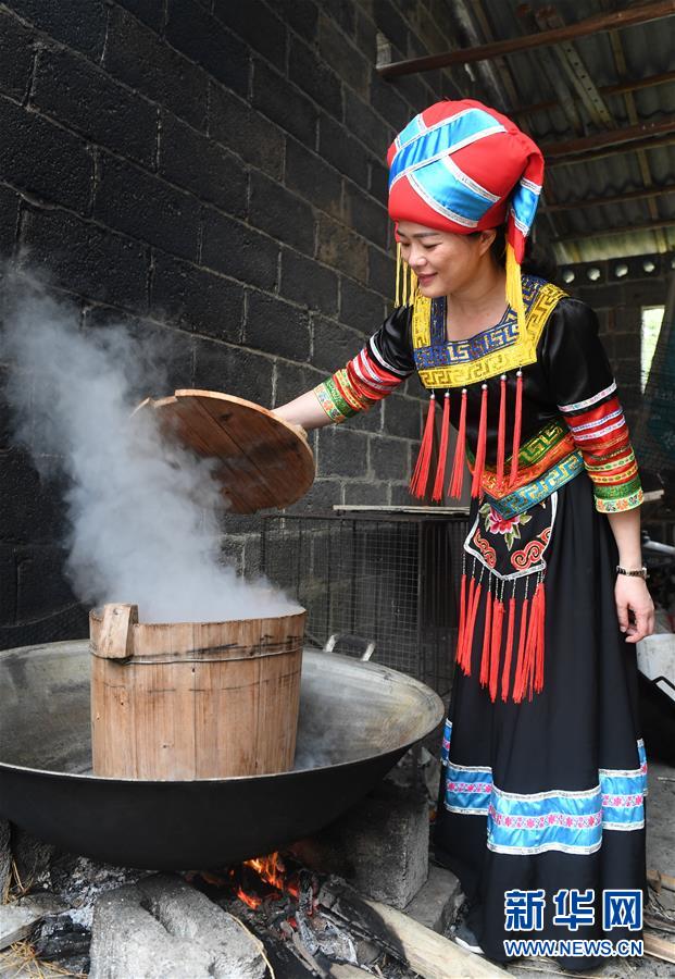 3月25日,在广西上林县巷贤镇,一名壮族女子在蒸制五色糯米饭。 每年“壮族三月三”到来之际,广西的壮族同胞都有蒸制五色糯米饭迎接节日的习俗,以祈祷五谷丰登,五福临门。这些五色糯米饭,主要采用天然植物萃取色素,将糯米分别浸泡到紫、黄、红、黑4种不同植物色素的水里,充分染色后,与原色糯米一起蒸熟而成。色泽鲜艳、清香诱人的五色糯米饭,是“壮族三月三”接待来客时必不可少的传统美食。 新华社记者 陆波岸 摄