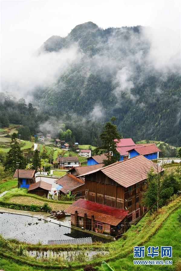3月29日拍摄的贵州省锦屏县固本乡东庄村雨后景色。新华社记者 杨文斌 摄