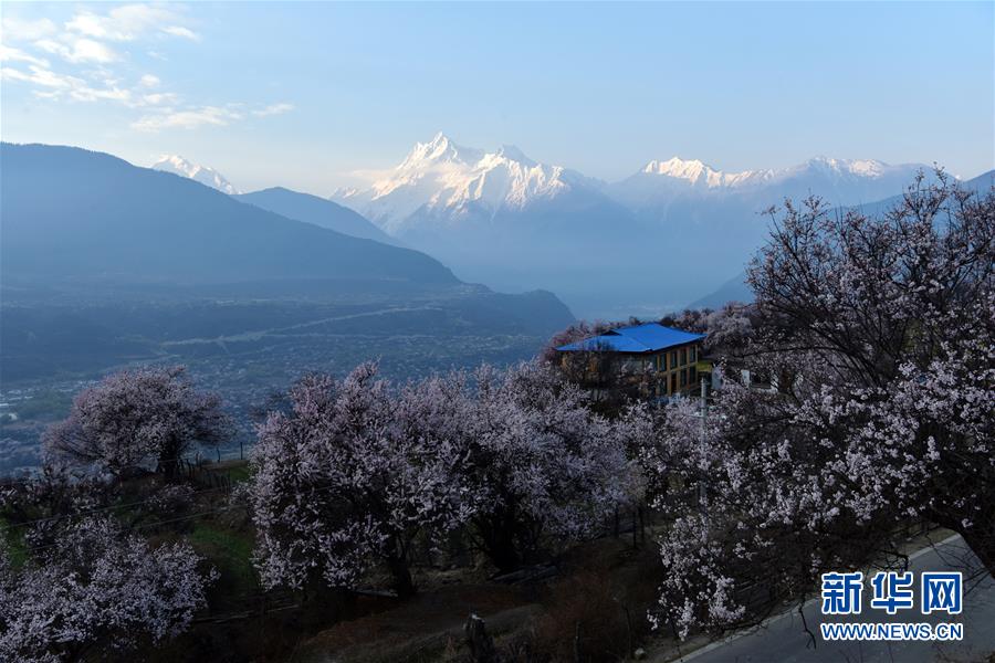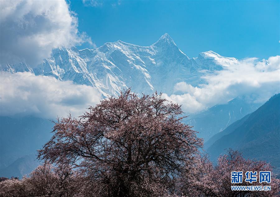 南迦巴瓦峰下盛开的桃花(4月1日摄)。 春天到来,雅鲁藏布江大峡谷中的桃花次第开放,将河谷两岸装点得如诗如画。 新华社记者 侯捷 摄