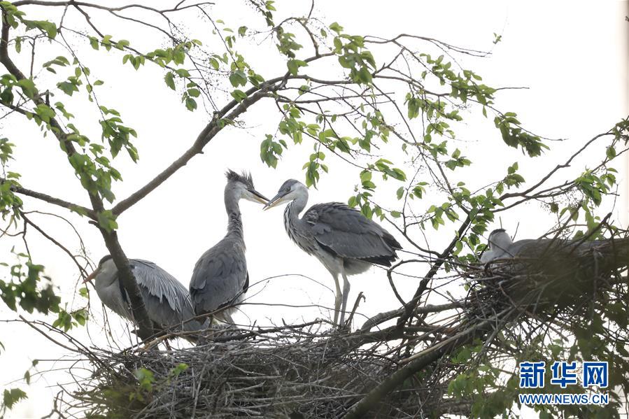 3月23日,苍鹭在毕节市黔西县锦星镇乡间枝头嬉戏。 春日时节,在贵州省毕节市黔西县锦星镇乡间,众多苍鹭、钳嘴鹳、白鹭等鸟类在这里繁衍栖息,构成了一幅美丽和谐的生态画卷。 新华社记者 杨楹 摄