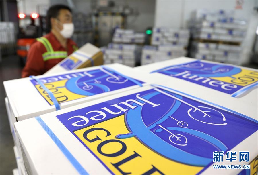 4月8日,在大连港毅都冷链有限公司冷库,工人搬运刚从冷藏集装箱卸下的进口羊肉。 复工复产以来,辽宁港口集团大连港采取提高平台服务水平、打造全新冷藏班列及优化运营方案等系列措施,加大力度发展冷链平台运营。2020年一季度,大连港进口冻肉同比增长15%。 新华社记者 姚剑锋 摄