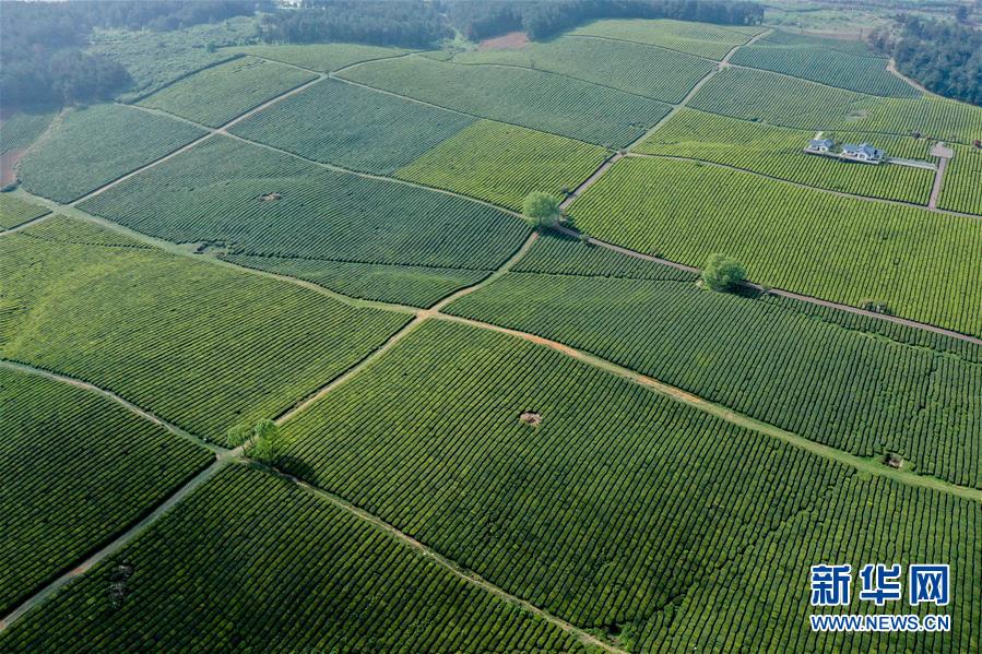 4月9日拍摄的羊艾茶园风光(无人机照片 )。 清明过后,位于贵州省贵安新区的羊艾茶园春色怡人,呈现出一幅美丽的春季画卷。 新华社记者 欧东衢 摄