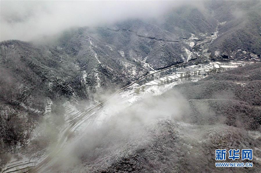 这是4月10日在河北省临城县拍摄的太行山雪景(无人机照片)。 当日,河北省临城县西部的太行山区降下春雪。 新华社记者 朱旭东 摄