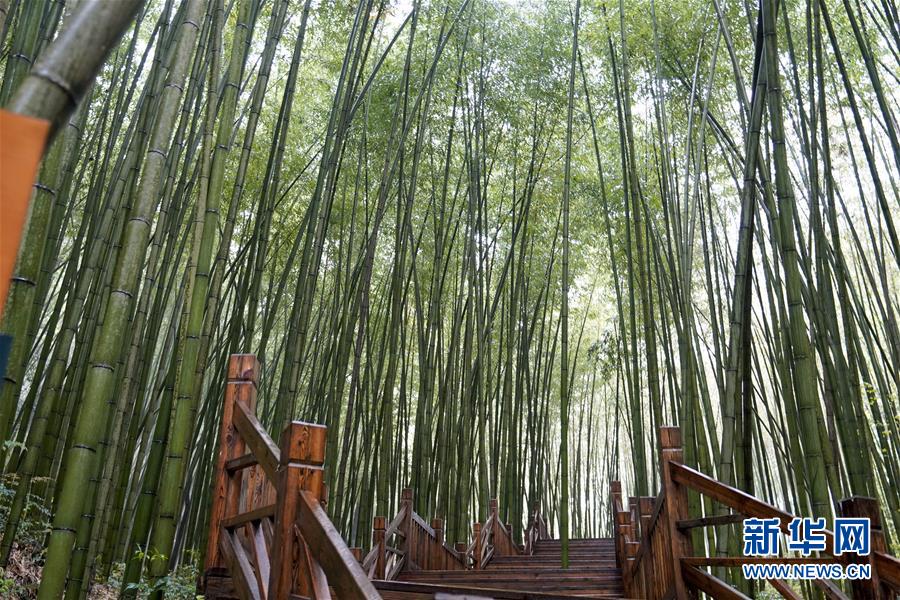 这是重庆市梁平区明月山百里竹海景区景色(4月10日)。 新华社记者 刘潺 摄