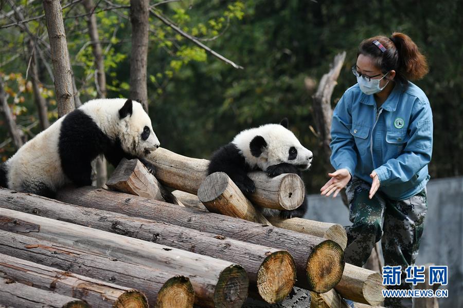 陕西省林业科学院秦岭大熊猫繁育研究中心,工作人员与大熊猫幼崽互动(3月31日摄)。 秦岭,横贯中国中部的东西走向山脉,是中国地理上重要的南北分界线。作为生态屏障的秦岭山脉还发挥着调节气候、保持水土、涵养水源、维护生物多样性等诸多功能。 同时,秦岭也被誉为中国的“生物基因库”,域内现有陆生野生动物580余种。被称为“秦岭四宝”的大熊猫、朱鹮、羚牛、金丝猴四种珍稀动物,其种群和栖息地面积近年来不断增长。 新华社记者 张博文 摄