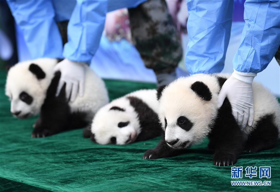 三只新生秦岭大熊猫在位于陕西西安的大熊猫国家公园秦岭大熊猫研究中心亮相(2019年11月11日摄)。 秦岭,横贯中国中部的东西走向山脉,是中国地理上重要的南北分界线。作为生态屏障的秦岭山脉还发挥着调节气候、保持水土、涵养水源、维护生物多样性等诸多功能。 同时,秦岭也被誉为中国的“生物基因库”,域内现有陆生野生动物580余种。被称为“秦岭四宝”的大熊猫、朱鹮、羚牛、金丝猴四种珍稀动物,其种群和栖息地面积近年来不断增长。 新华社记者 李一博 摄