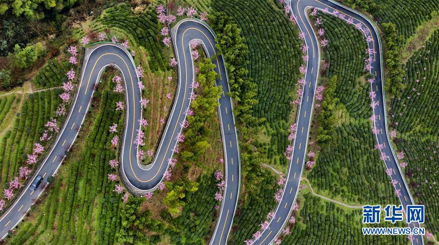 陕西平利县长安镇洪福茶山,道路两旁的春梅盛开(3月2日摄,无人机照片)。 秦岭,横贯中国中部的东西走向山脉,是中国地理上重要的南北分界线。作为生态屏障的秦岭山脉还发挥着调节气候、保持水土、涵养水源、维护生物多样性等诸多功能。 同时,秦岭也被誉为中国的“生物基因库”,域内现有陆生野生动物580余种。被称为“秦岭四宝”的大熊猫、朱鹮、羚牛、金丝猴四种珍稀动物,其种群和栖息地面积近年来不断增长。 新华社记者 陶明 摄