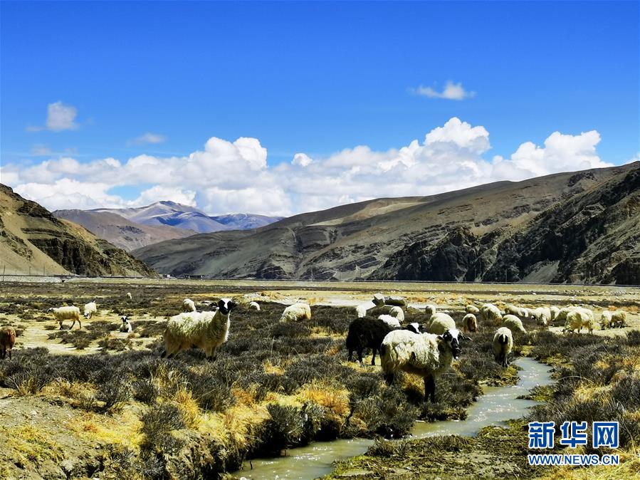 这是珠峰自然保护区中心地带扎西宗乡的羊群(5月3日摄)。 珠穆朗玛峰国家级自然保护区是以保护高山生态系统及其相邻的高原自然景观、丰富独特的生物多样性、具有重大科学价值的地史遗迹以及藏族历史文化遗产为主的综合性自然保护区。保护区内生物资源丰富,景色壮美。 新华社记者 沈虹冰 摄