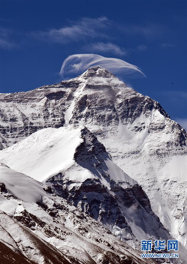 从加吾拉山口眺望珠穆朗玛峰(5月4日摄)。 珠穆朗玛峰国家级自然保护区是以保护高山生态系统及其相邻的高原自然景观、丰富独特的生物多样性、具有重大科学价值的地史遗迹以及藏族历史文化遗产为主的综合性自然保护区。保护区内生物资源丰富,景色壮美。 新华社记者 张京品 摄