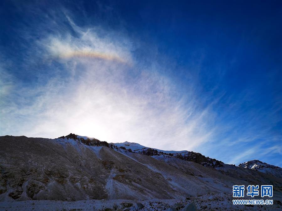 这是珠峰大本营上空的彩虹(5月3日摄)。 珠穆朗玛峰国家级自然保护区是以保护高山生态系统及其相邻的高原自然景观、丰富独特的生物多样性、具有重大科学价值的地史遗迹以及藏族历史文化遗产为主的综合性自然保护区。保护区内生物资源丰富,景色壮美。 新华社记者 沈虹冰 摄 |