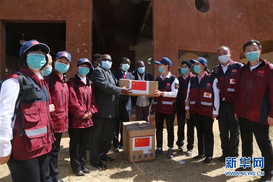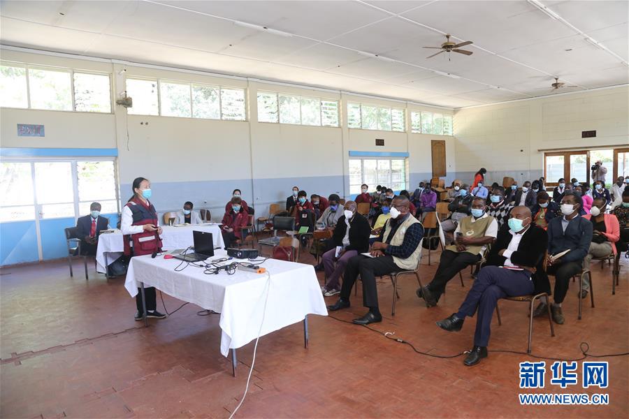 5月19日,在津巴布韦中马绍纳兰省的姆武尔维医院,专家组为当地医疗机构捐赠医疗物资。 中国赴津巴布韦抗疫医疗专家组18日至20日分别前往津东马绍纳兰省、中马绍纳兰省和西马绍纳兰省交流考察,与当地医护人员分享抗疫经验,为当地医疗机构提供防疫建议并捐赠医疗物资。 新华社记者 张玉亮 摄