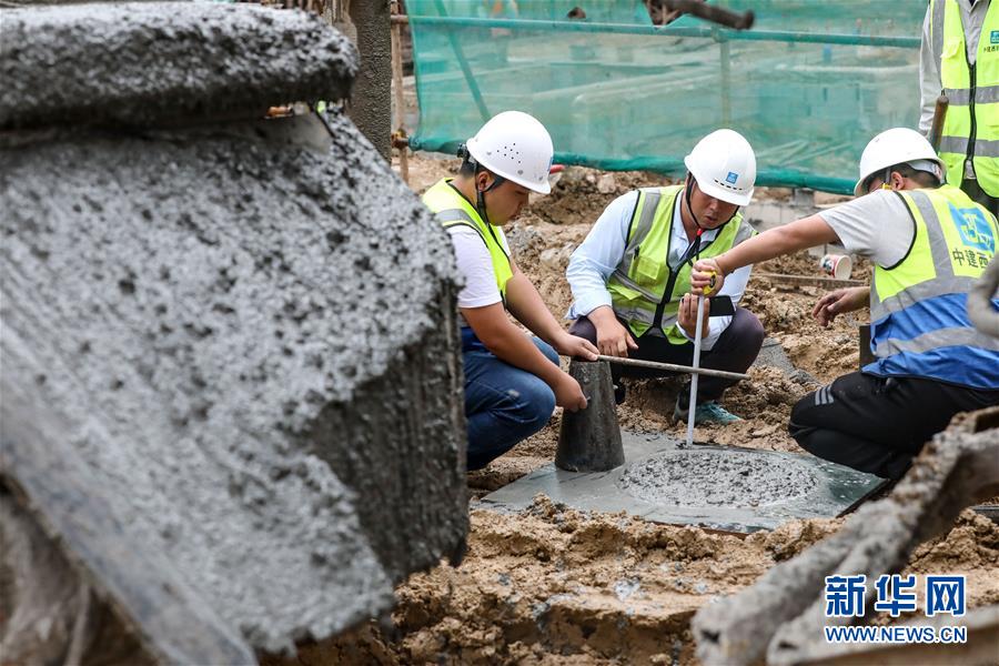 5月24日,施工人员在贵阳龙洞堡国际机场T3航站楼项目工地对混凝土进行测试。 当日,由中建三局、中建西部建设等单位参与施工的贵阳龙洞堡国际机场T3航站楼项目结构区域桩基施工全面完成,航站楼主体结构全面铺开施工。贵阳龙洞堡国际机场三期扩建工程总投资约200亿元,主体结构计划于今年下半年完工。 新华社记者 欧东衢 摄