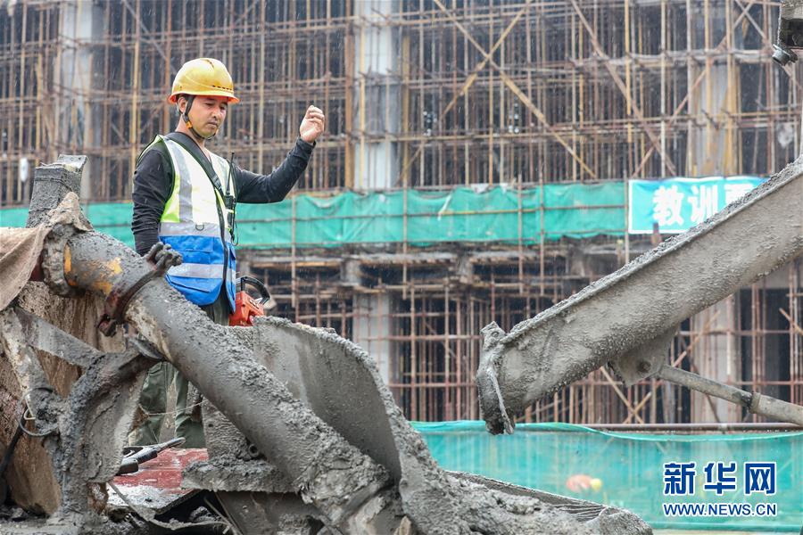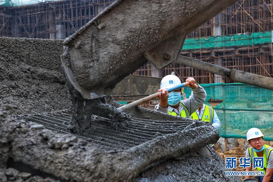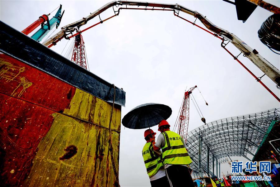 5月24日,施工人员在贵阳龙洞堡国际机场T3航站楼项目工地对最后一根桩基进行混凝土浇灌。 当日,由中建三局、中建西部建设等单位参与施工的贵阳龙洞堡国际机场T3航站楼项目结构区域桩基施工全面完成,航站楼主体结构全面铺开施工。贵阳龙洞堡国际机场三期扩建工程总投资约200亿元,主体结构计划于今年下半年完工。 新华社记者 刘续 摄