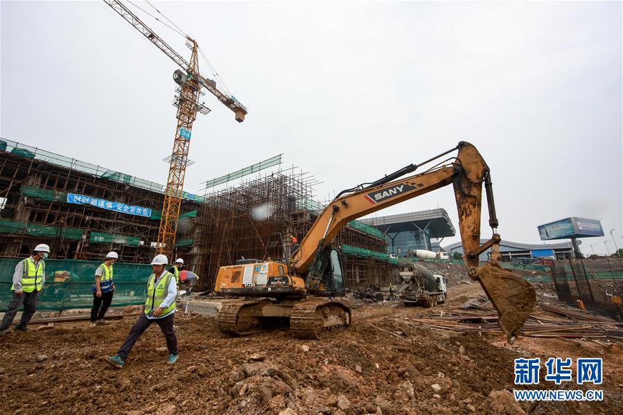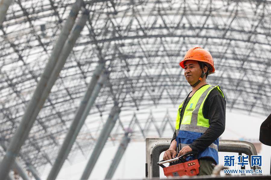 5月24日,中建三局施工人员在贵阳龙洞堡国际机场T3航站楼项目工地施工。 当日,由中建三局、中建西部建设等单位参与施工的贵阳龙洞堡国际机场T3航站楼项目结构区域桩基施工全面完成,航站楼主体结构全面铺开施工。贵阳龙洞堡国际机场三期扩建工程总投资约200亿元,主体结构计划于今年下半年完工。 新华社记者 欧东衢 摄