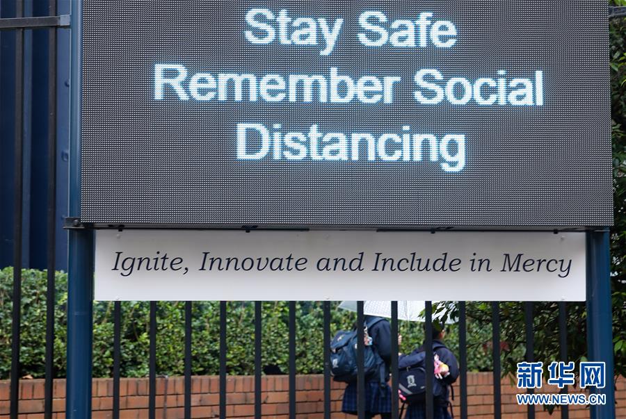 5月25日,在澳大利亚悉尼,学生走过写有“欢迎学生返校”的电子宣传板。 当日,悉尼所在的澳大利亚新南威尔士州部分中小学复课。 新华社记者 白雪飞 摄